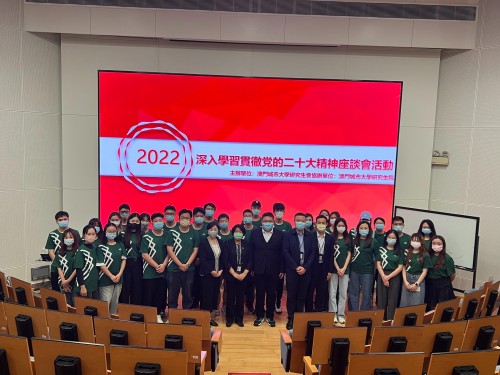 由澳門城市大學研究生會主辦,研究生院協辦的“深入學習貫徹二十大精神座談會活動”,於11月16日下午在澳門城市大學氹仔校區何賢會議中心召開,中國社會科學院政治學研究所所長張樹華,澳門城市大學副校長孔繁清、副校長兼研究生院院長葉桂平出席並發言,研究生院副院長周龍主持活動。